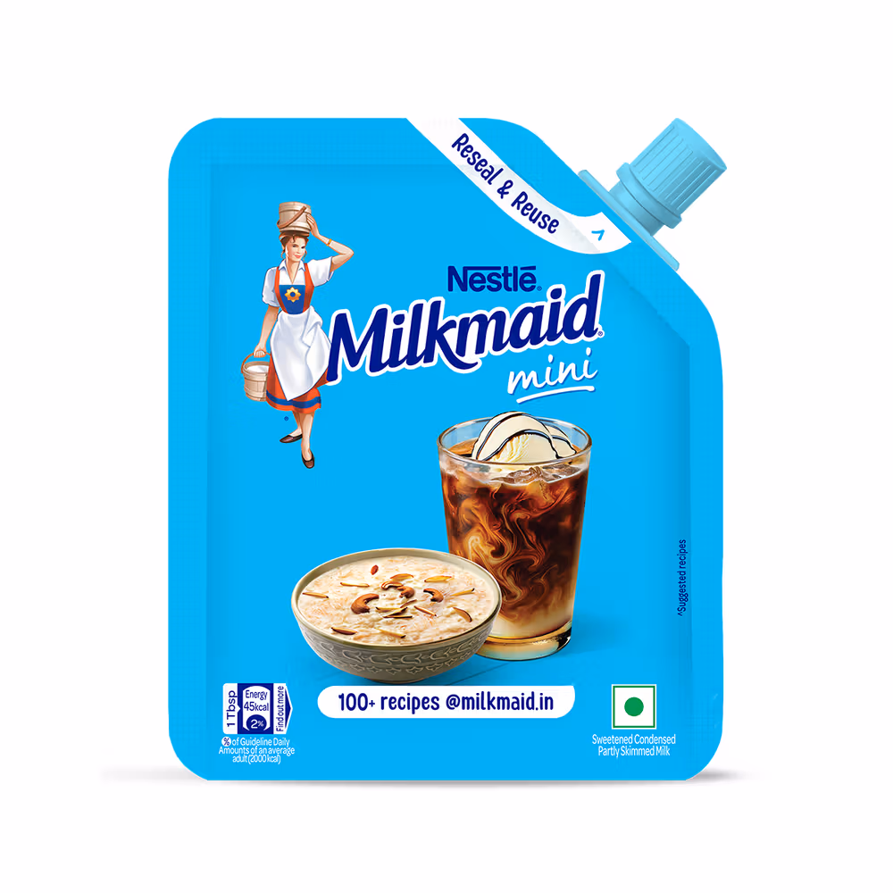 Your favorite Milkmaid now in an easy pour pack with a resealable cap. Enjoy the sweetened condensed milk made with high-quality partly skimmed milk