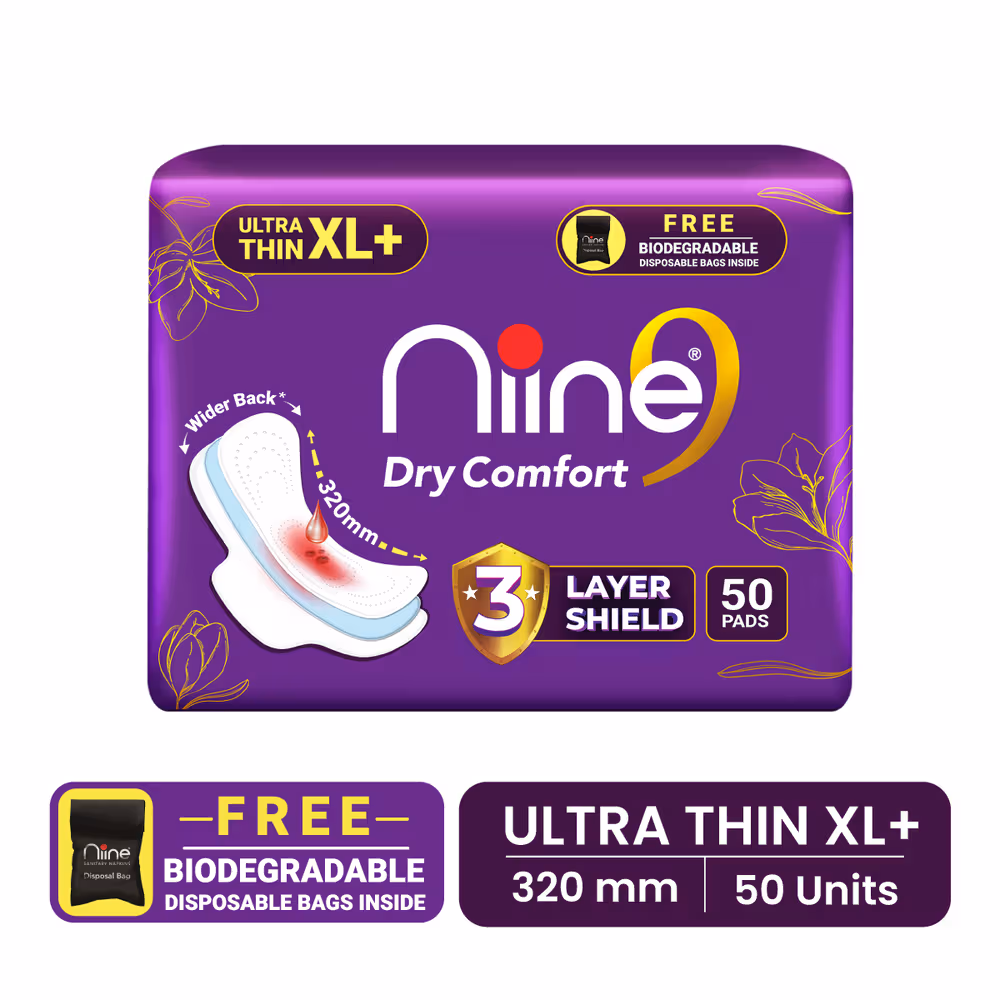 Triple-layered protection for heavy flow, Wider backside for enhanced coverage, Odour control with fresh fragrance, Rash-free soft cotton edges