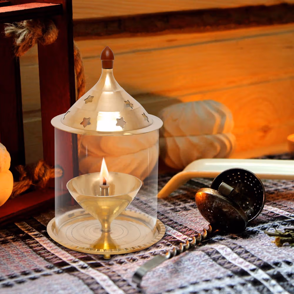 Nitya Brass Akhand Jyot Aaradhya Diya, Borosilicate Glass