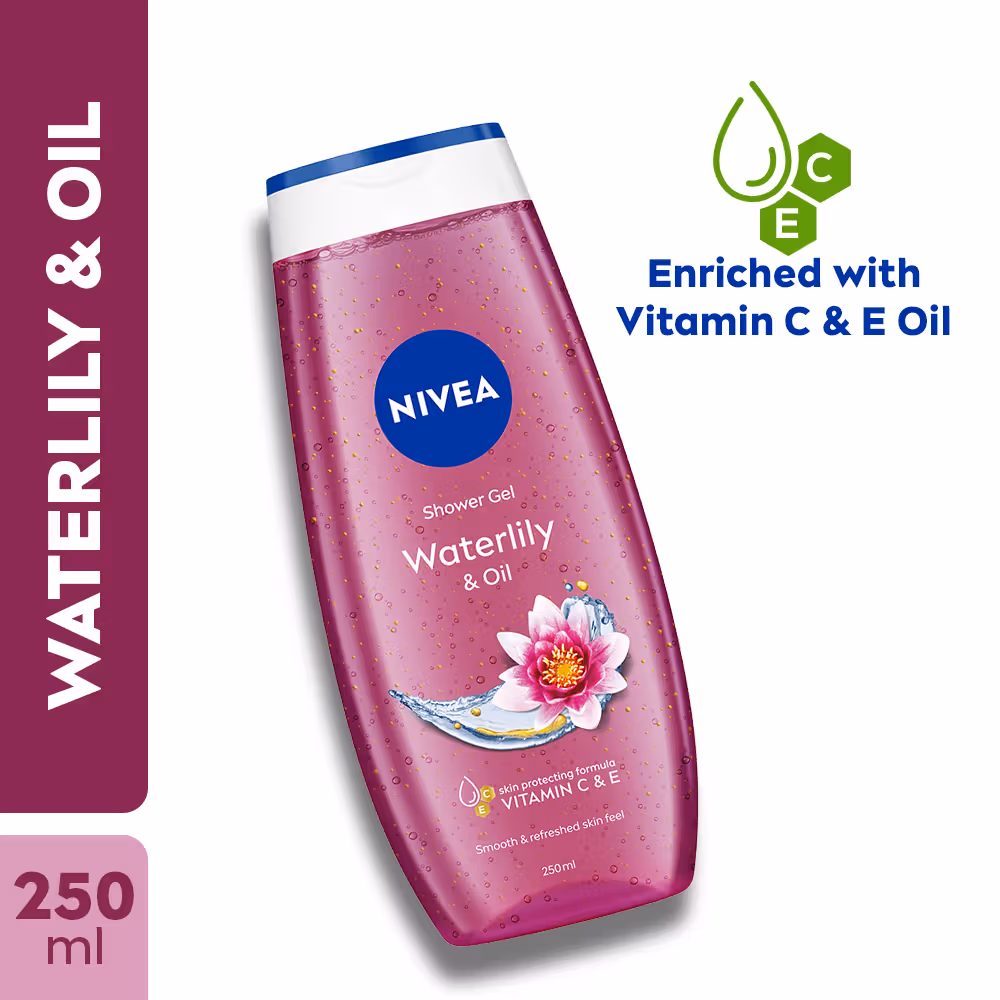 Refreshing waterlily fragrance, Contains moisturizing oil pearls, pH balanced formula, Microplastic-free and biodegradable