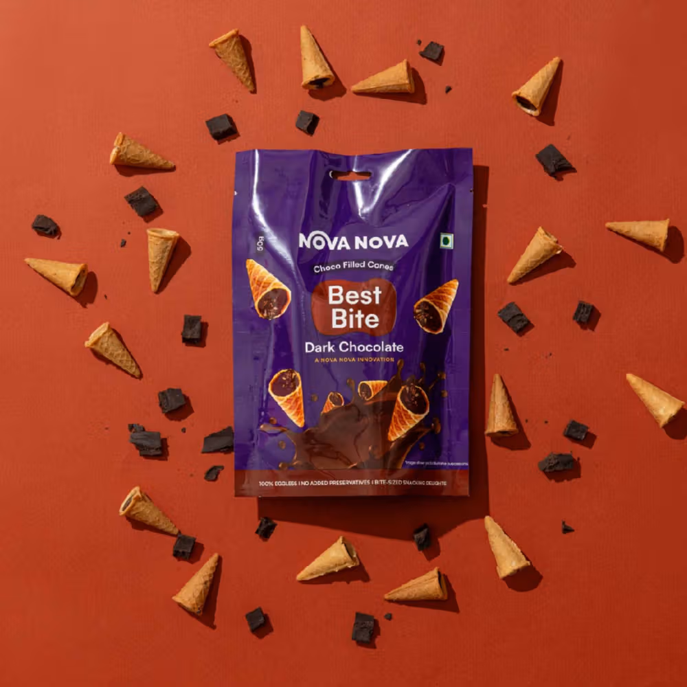 Bite-sized cones filled with chocolate, smooth melt-in-the-mouth texture, perfect for gifting or personal treats, rich and intense dark chocolate flavor