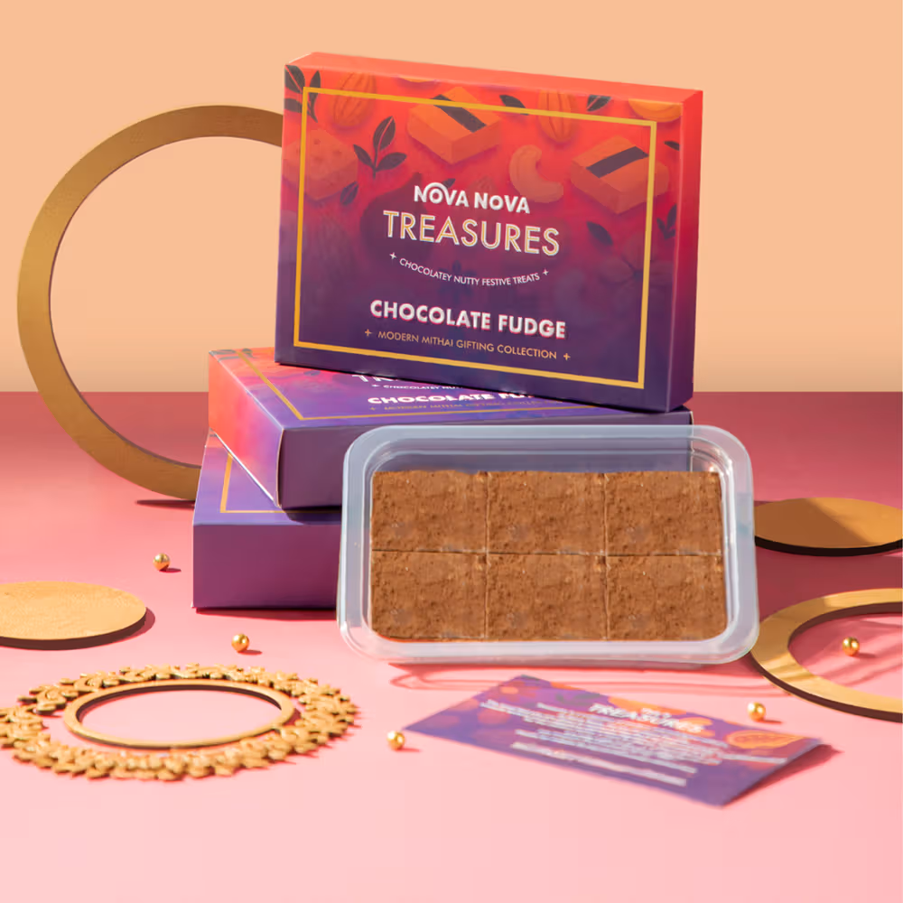 The Nova Nova Chocolate Fudge Gift Box offers a delightful assortment of rich chocolate fudge, perfect for gifting or indulging in a sweet treat.