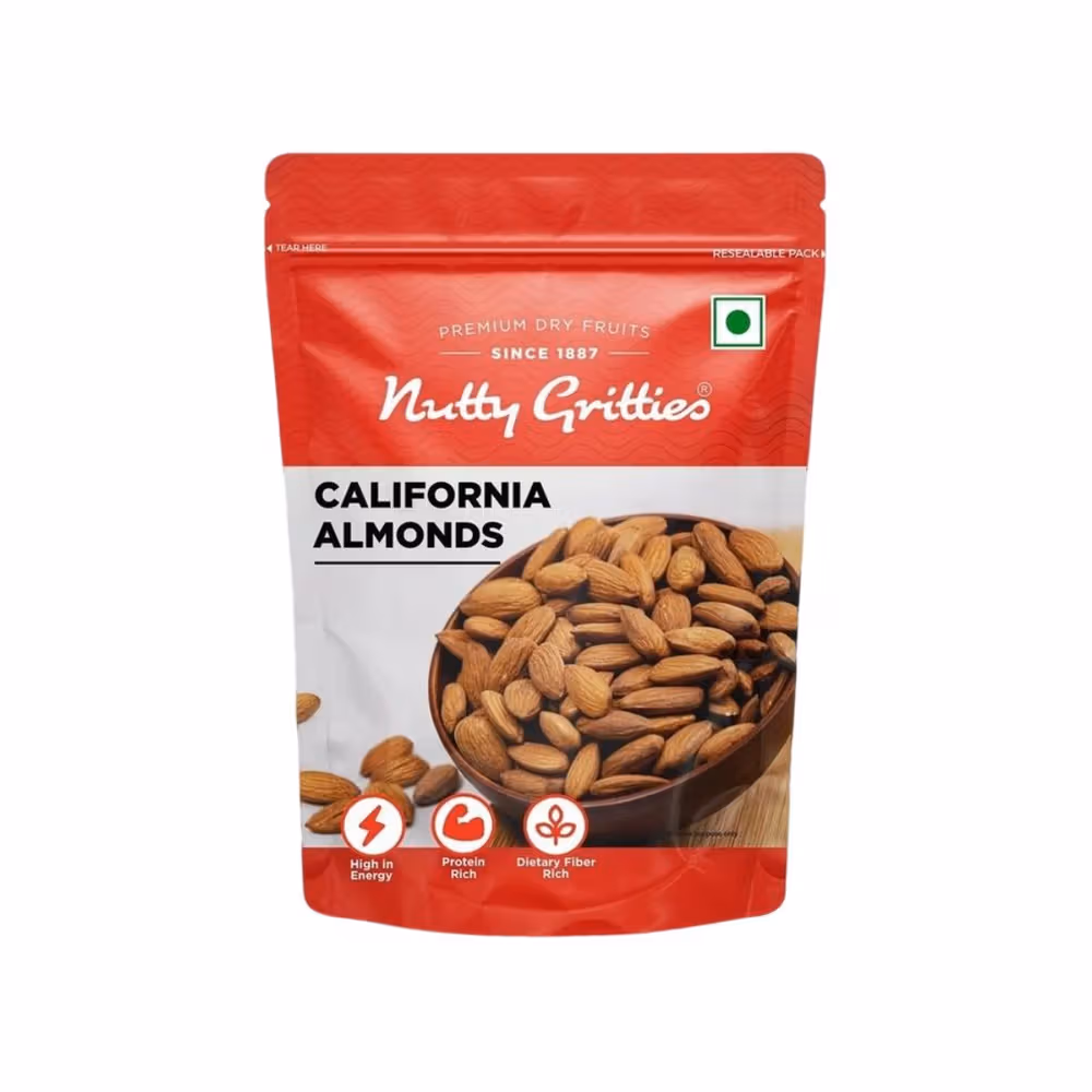 Premium handpicked almonds, naturally raw and whole, rich in protein and fiber, resealable pouch for freshness