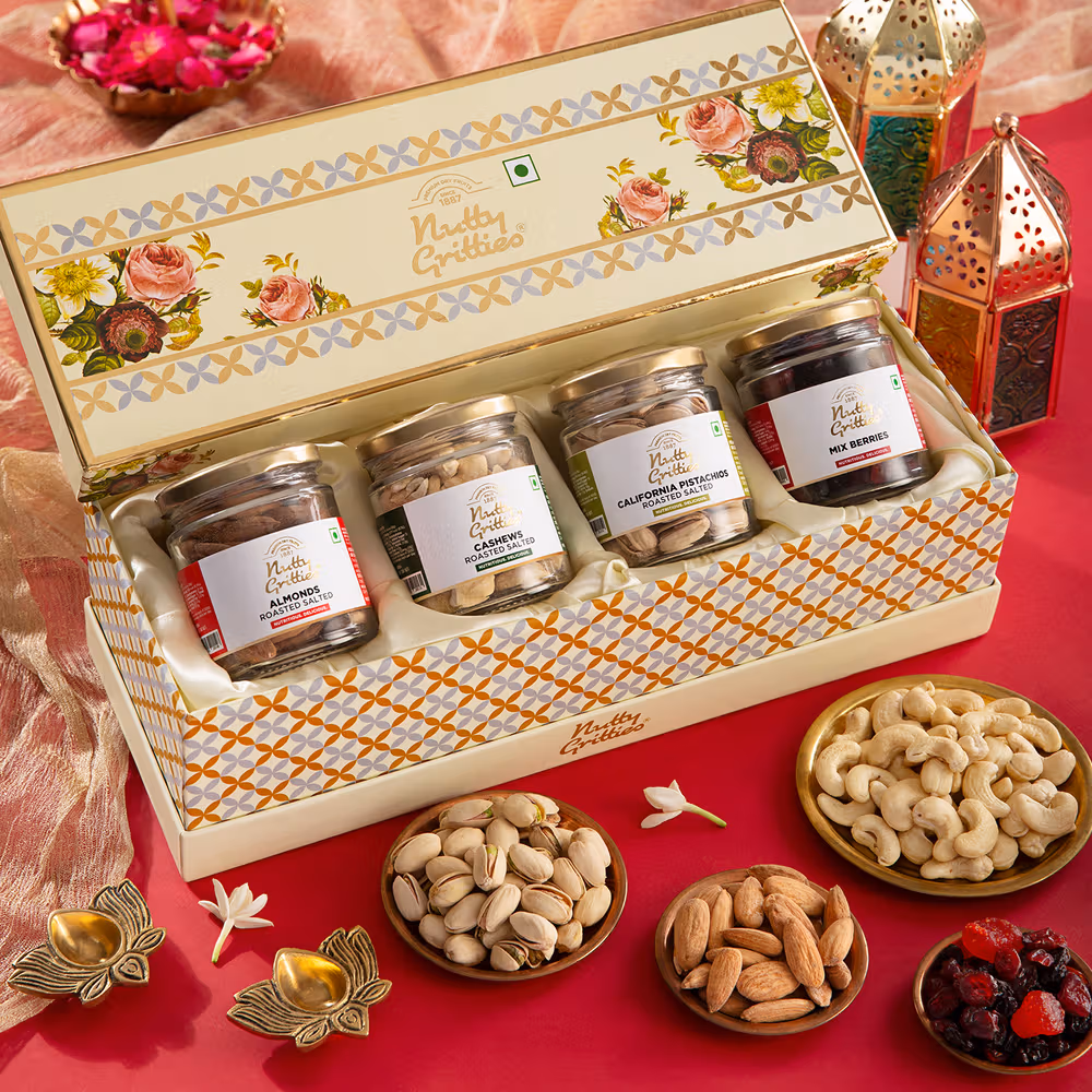 Premium selection of dry fruits, resealable packaging for freshness, healthy gourmet snacks, perfect for gifting