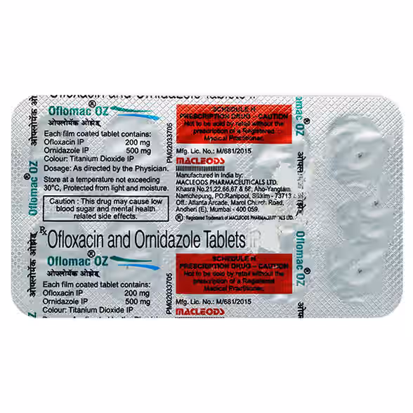 Ofloxacin (200mg), Ornidazole (500mg)