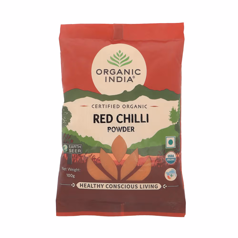 Organic India Red Chilli Powder is made from dried, crushed red chilli pepper, adding flavor and acting as an antioxidant to strengthen the immune system