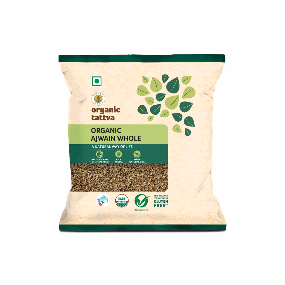 Organically grown without pesticides, organic ajwain or bishop seed, country of origin: India