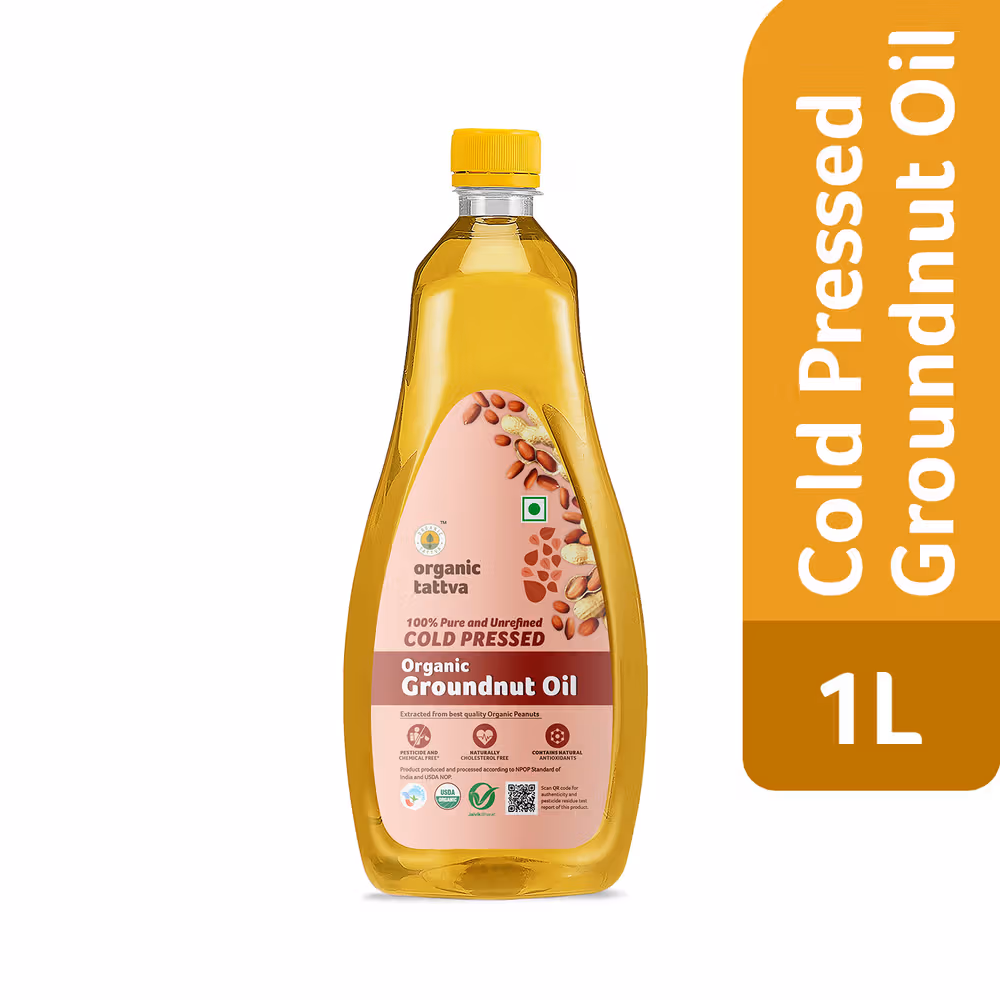 Pure unrefined groundnut oil from organic farms, Rich in natural vitamin E and antioxidants, Zero cholesterol and trans-fat free cooking oil