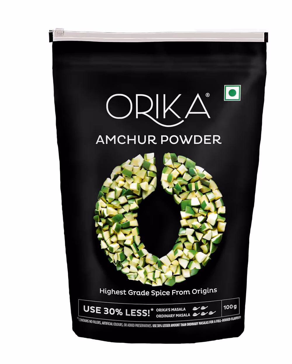 Premium quality dried mango powder, adds tanginess to enhance flavor, no artificial colors or preservatives, perfect for curries and chutneys
