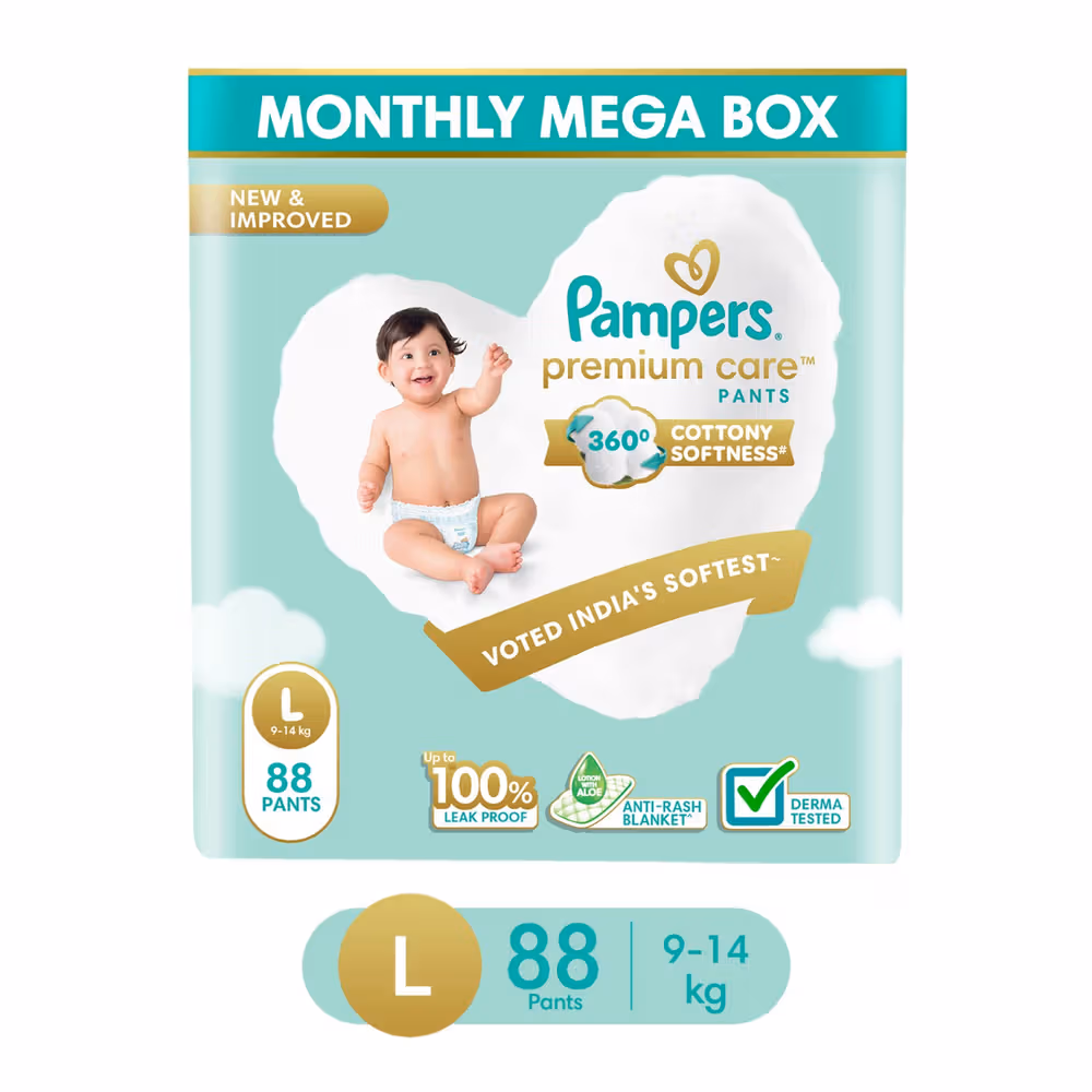 Superior 360-degree cottony softness, 12-hour leak protection with micropores, Wetness indicator for timely changes