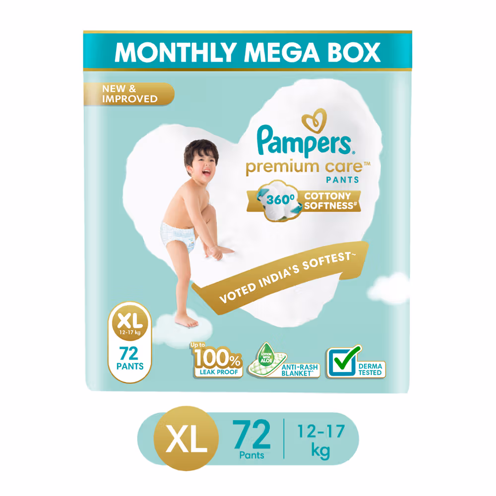 Superior 12-hour leak protection system, Breathable micropores for skin comfort, aloe vera lotion prevents diaper rash