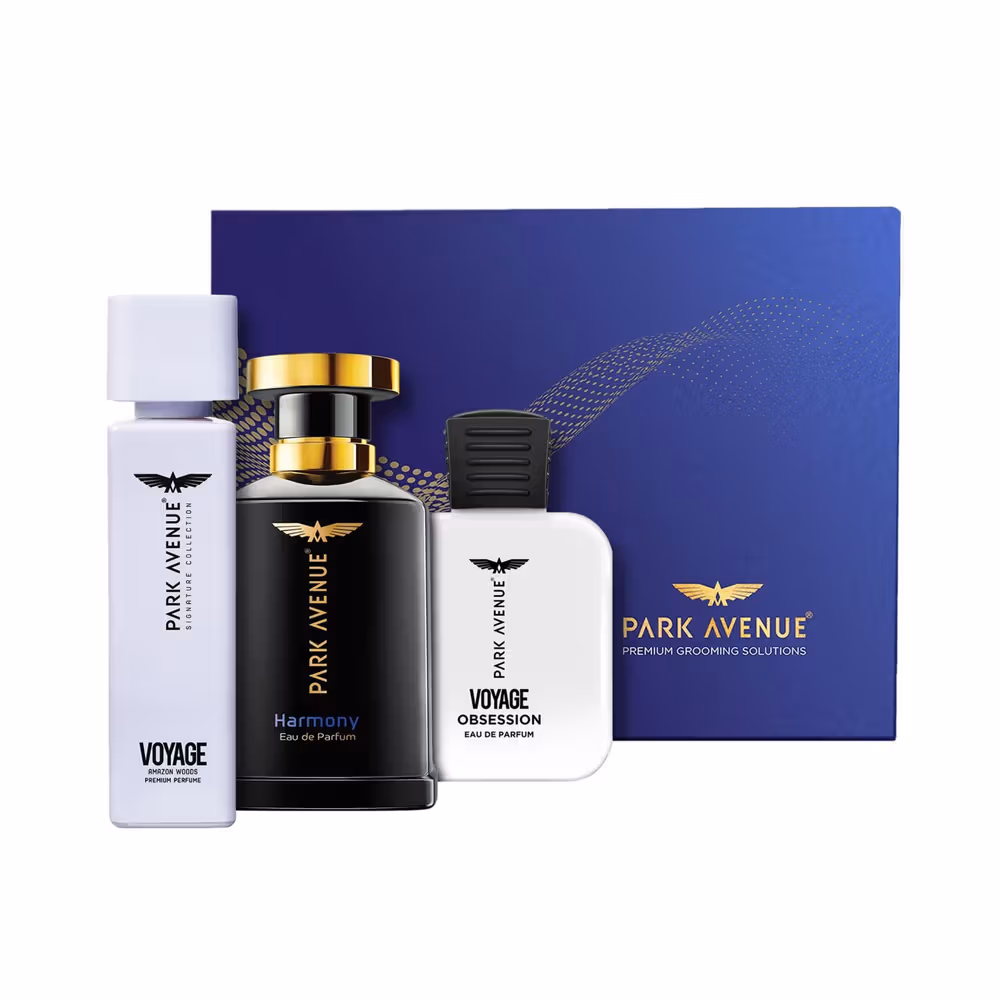1 x 120 ml Signature Voyage Amazon Wood Perfume, 1 x 50 ml Signature Voyage Obsession EDP, and 1 x 100 ml Euphoria/Conquer/Harmony EDP