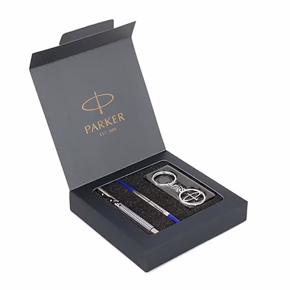 Elegant chrome trim design, smooth ink flow for neat writing, includes a stylish keychain, perfect for gifting occasions