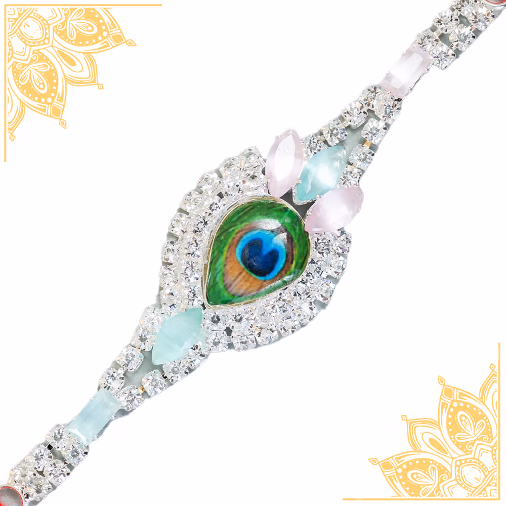 Premium stone-embellished craftsmanship, peacock feather design adds royal touch, durable thread ensures secure fit