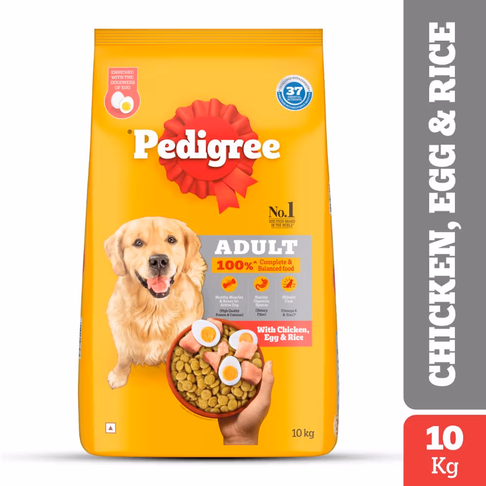 Provides 100% complete & balanced nutrition, packed with mouth-watering kibbles, specially formulated for adult dogs, dry dog food with 37 essential nutrients, protein & Calcium support healthy muscles & bones.