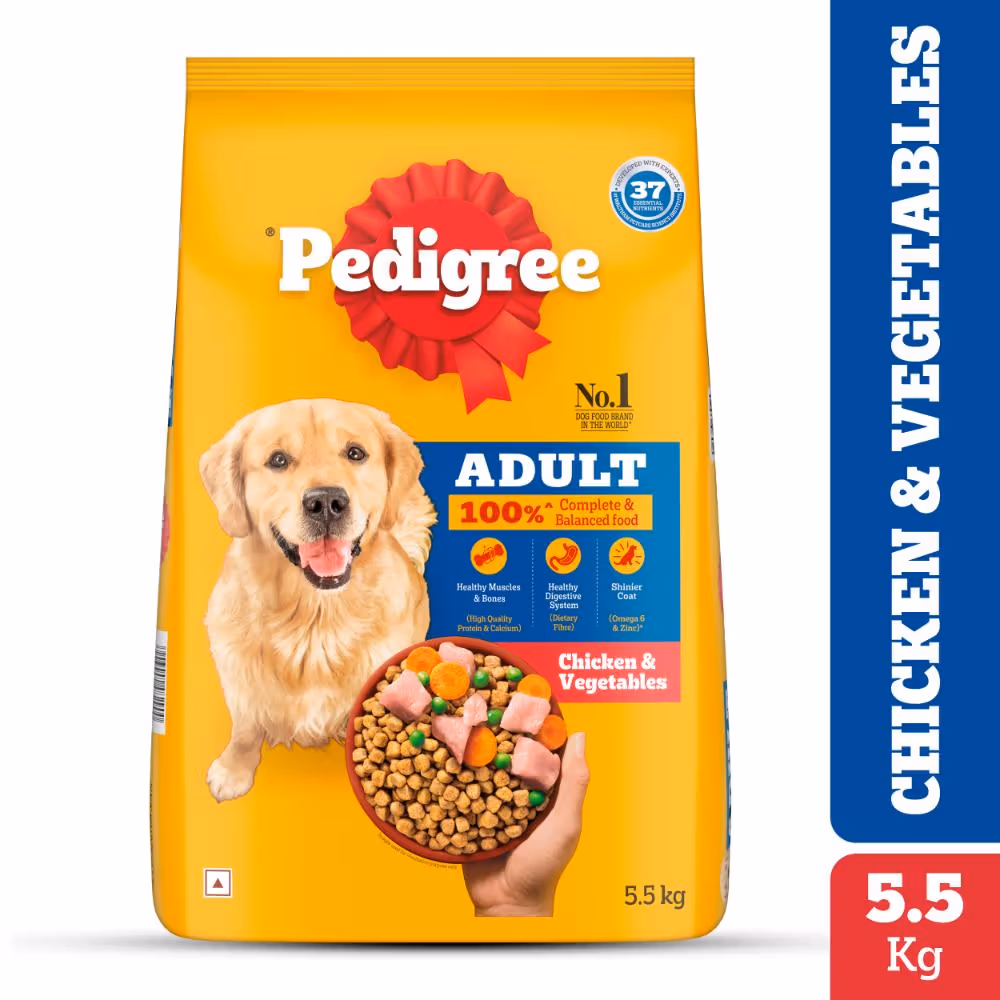 Provides 100% complete & balanced nutrition, packed with mouth-watering kibbles, specially formulated for adult dogs, dry dog food with 37 essential nutrients, protein & Calcium support healthy muscles & bones.