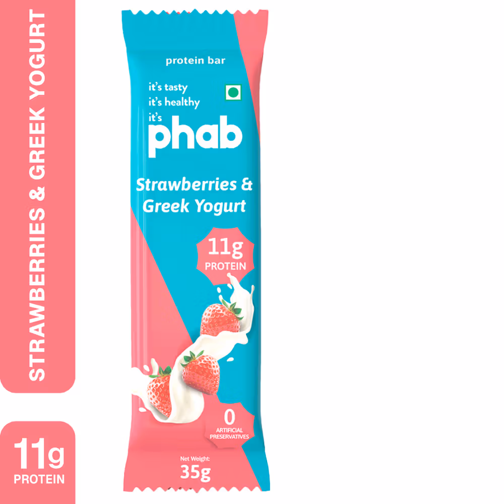 Protein 35% ((Isolates - Whey Protein Isolate, Pea Protein Isolate), Soy Granules), Arabian Date Paste, Prebiotic -Fructooligosaccharide, Sugarfree White Chocolate (INS 965, Edible Vegetable Fat, Milk Solids, Emulsifier (INS 322(i)), Humectant (INS 422 & INS 965(ii)), Dehydrated Strawberry Pieces, High Oleic Sunflower Oil, Yogurt Powder, Cream Cheese Powder, Emulsifier (INS 412, INS 322 (i)), Edible common salt (Himalayan Pink Salt), Acidity regulator (INS 330), Nature identical flavoring substances - Strawberry, Rosemary