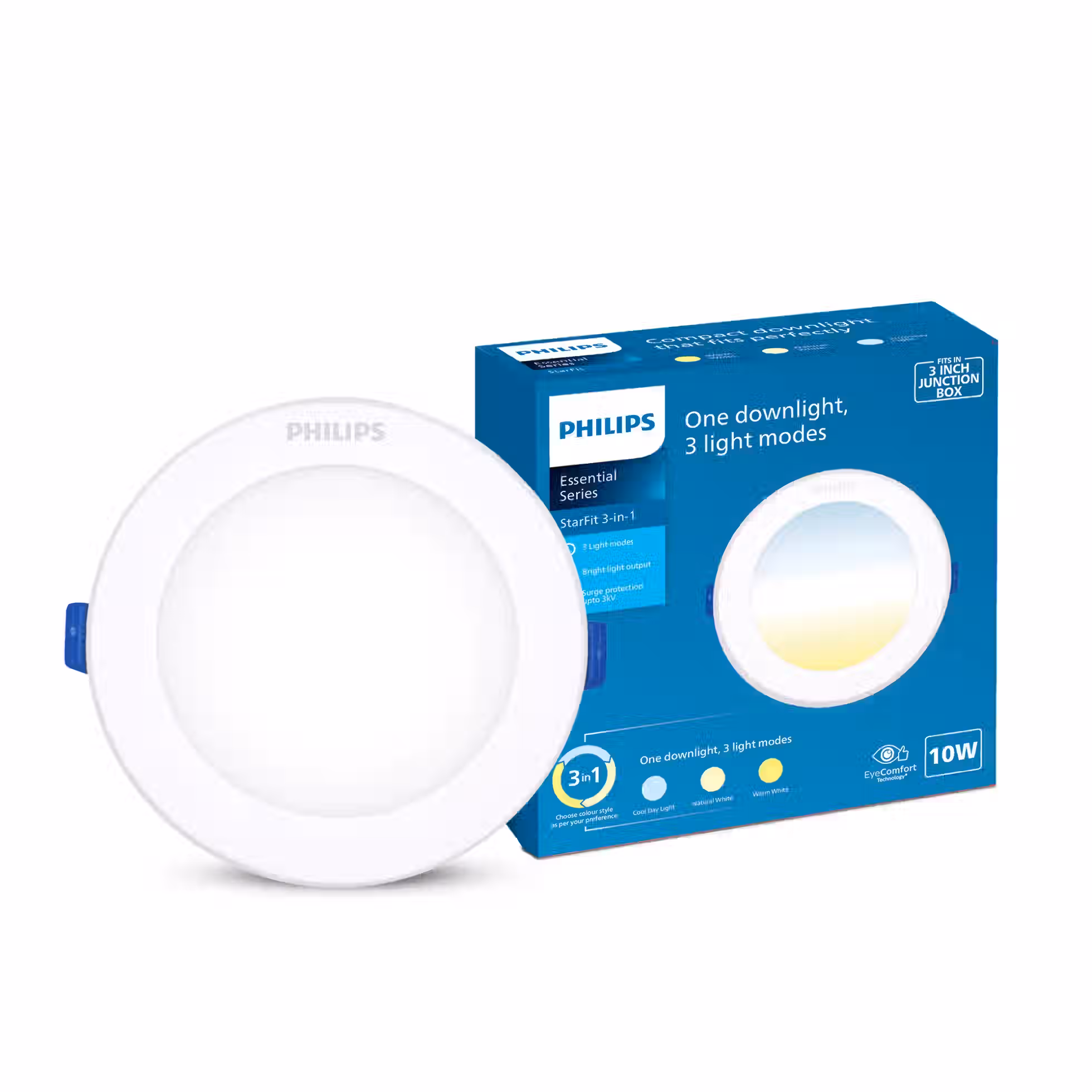 Tunable white for mood lighting, compact design fits standard boxes, energy-efficient LED technology, durable polycarbonate housing