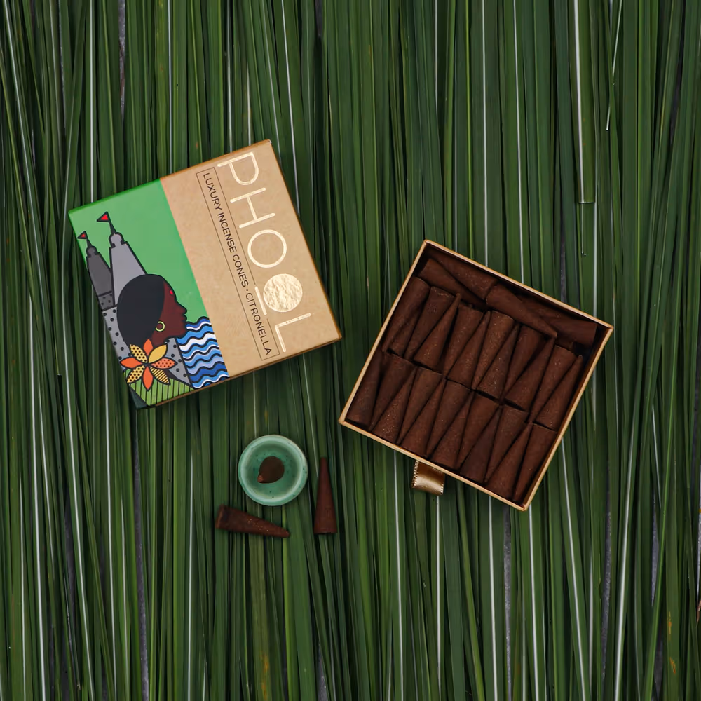 100% natural ingredients, handcrafted from temple flowers, effective mosquito repellent, soothing citronella fragrance