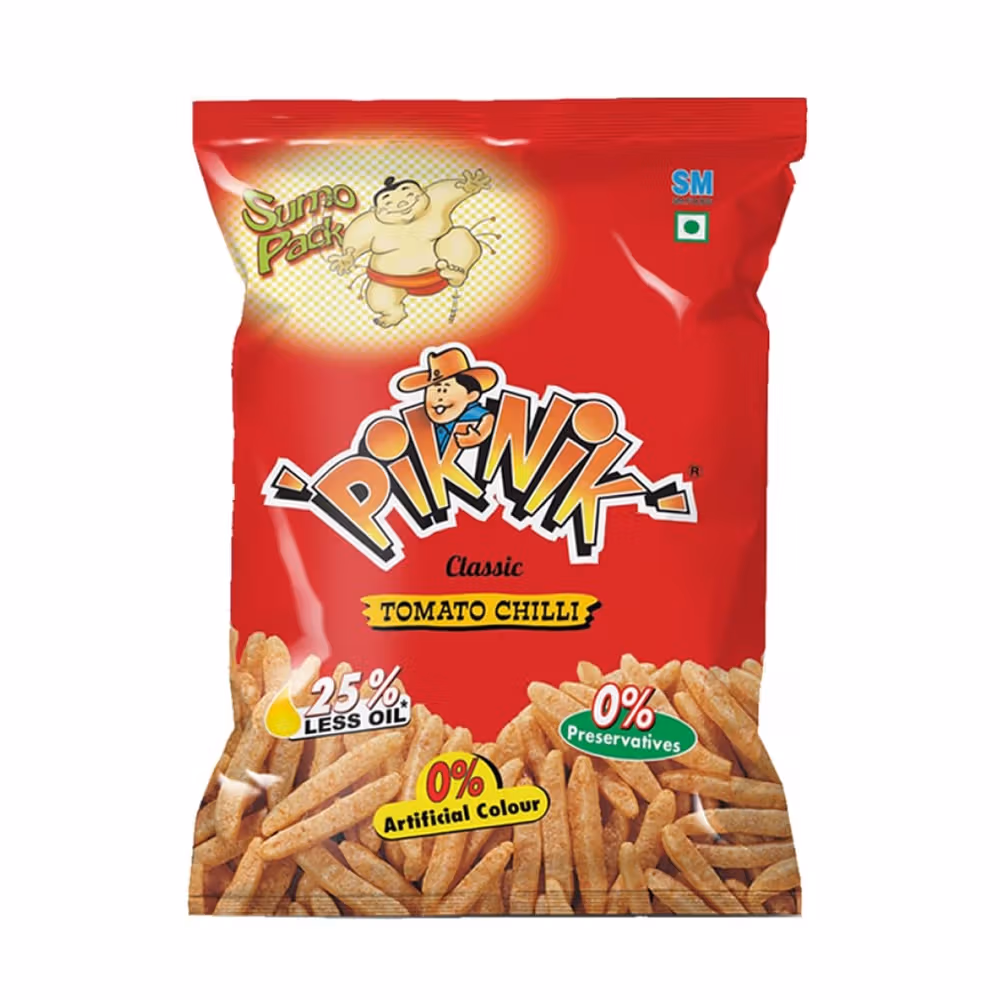 25% less oil than regular potato chips, Crispy wheat-based snack sticks, Perfect blend of tomato and chilli flavors