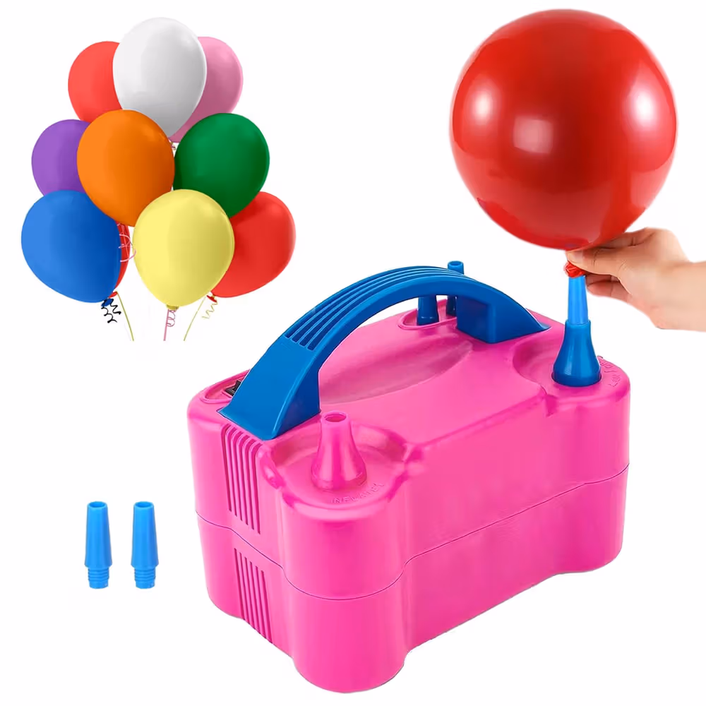Electric balloon pump in pink color for quick and effortless balloon inflation, perfect for parties, weddings, and other celebrations, easy to use