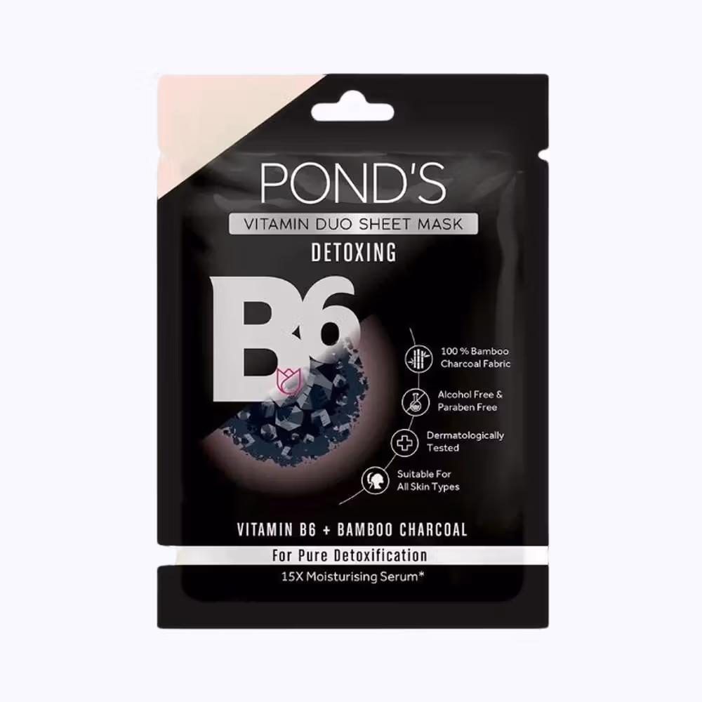 Detoxifies with bamboo charcoal, hydrates with Vitamin B6, alcohol and paraben free, biodegradable fabric