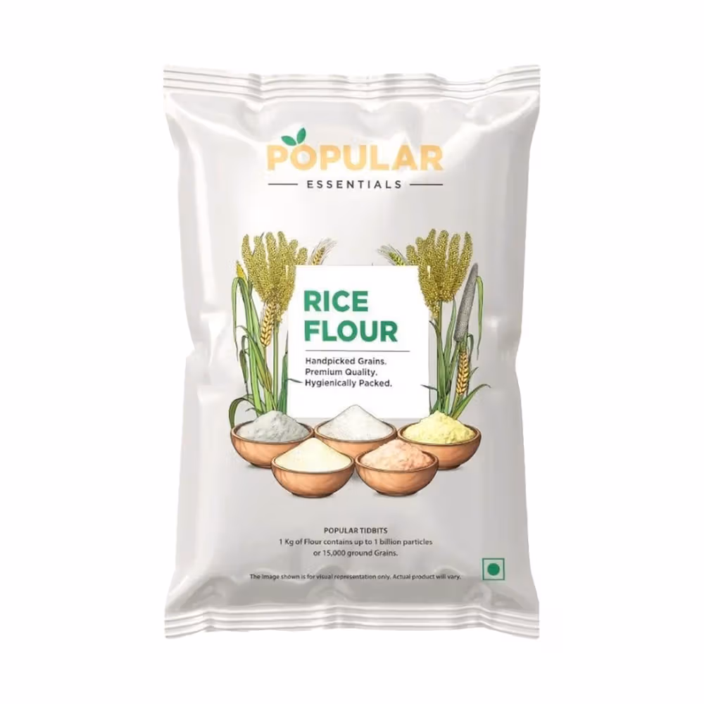 Popular Essentials Rice Flour is hygienically packed and gluten-free, made from handpicked grains of premium quality, perfect for various dishes