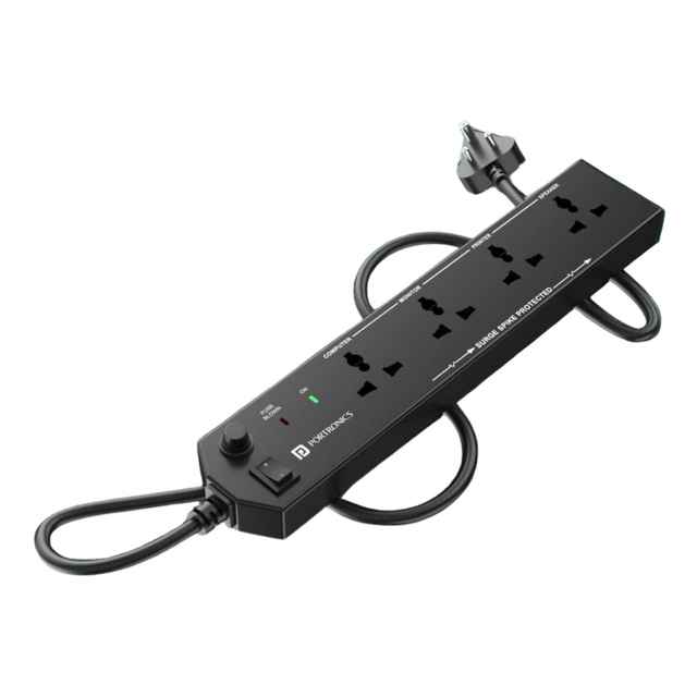 Portronics Power Plate 10 Extension Board with 4 Universal Sockets, 3 Meter Long Cord, 1500 Watts, 6 Amp Multi Plug for Office & Home Appliances - Black