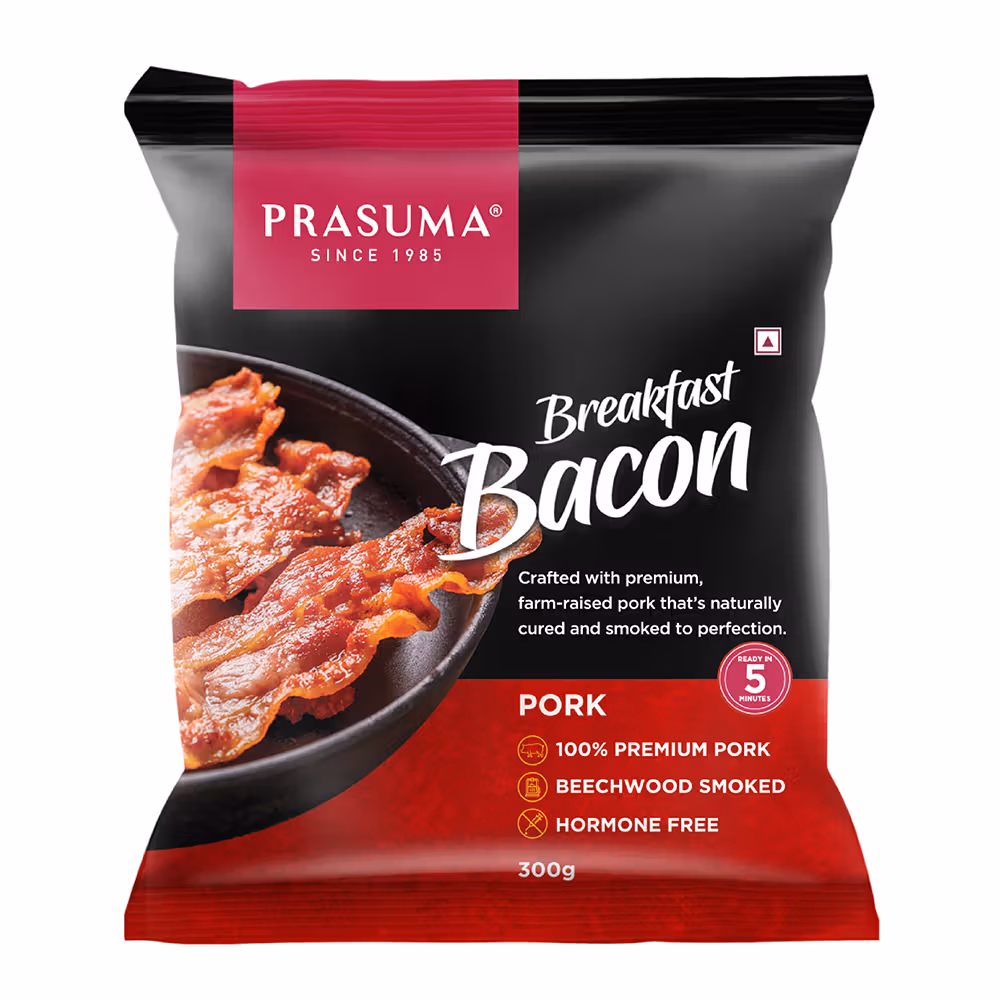Made from premium imported Pork belly for Umami flavour, High protein meat, Ideal fat-to-meat ratio for crispy bite, Naturally slow-smoked in-house with Beechwood
