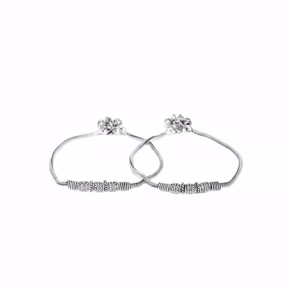 Traditional oxidised silver design, intricate pattern with ghungroo beads, perfect for ethnic wear, durable german silver construction