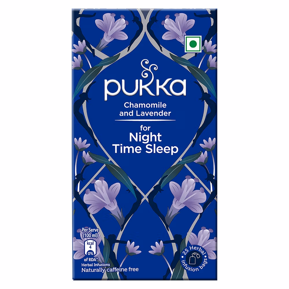 Ashwagandha Root, Chamomile (43%), Fennel, Lavender (3%), Licorice, Nutmeg, and Tulsi Leaf