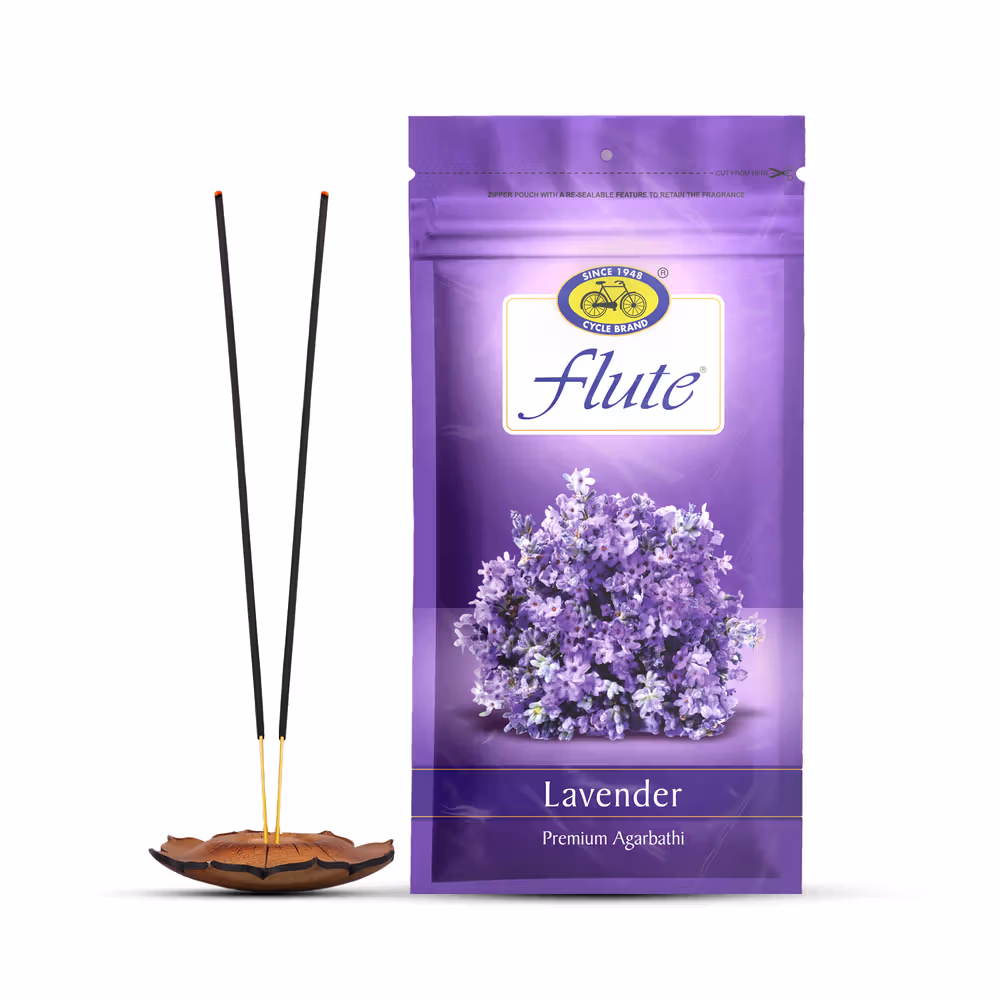Cycle Pure Flute Lavender Agarbatti offers a calming lavender fragrance, creating a positive and relaxed environment ideal for meditation and prayer
