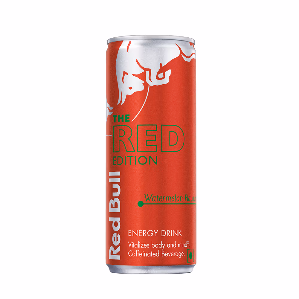 Acidity Regulator (Sodium Citrate), Added Flavours (Natural and Artificial [Watermelon]), Caffeine (30 mg/100 ml), Carbon Dioxide, Glucose, Natural Colour (Anthocyanins), Sucrose, Taurine (0.4%), Vitamins (B12, B2, B6), Acidulant (Citric Acid)