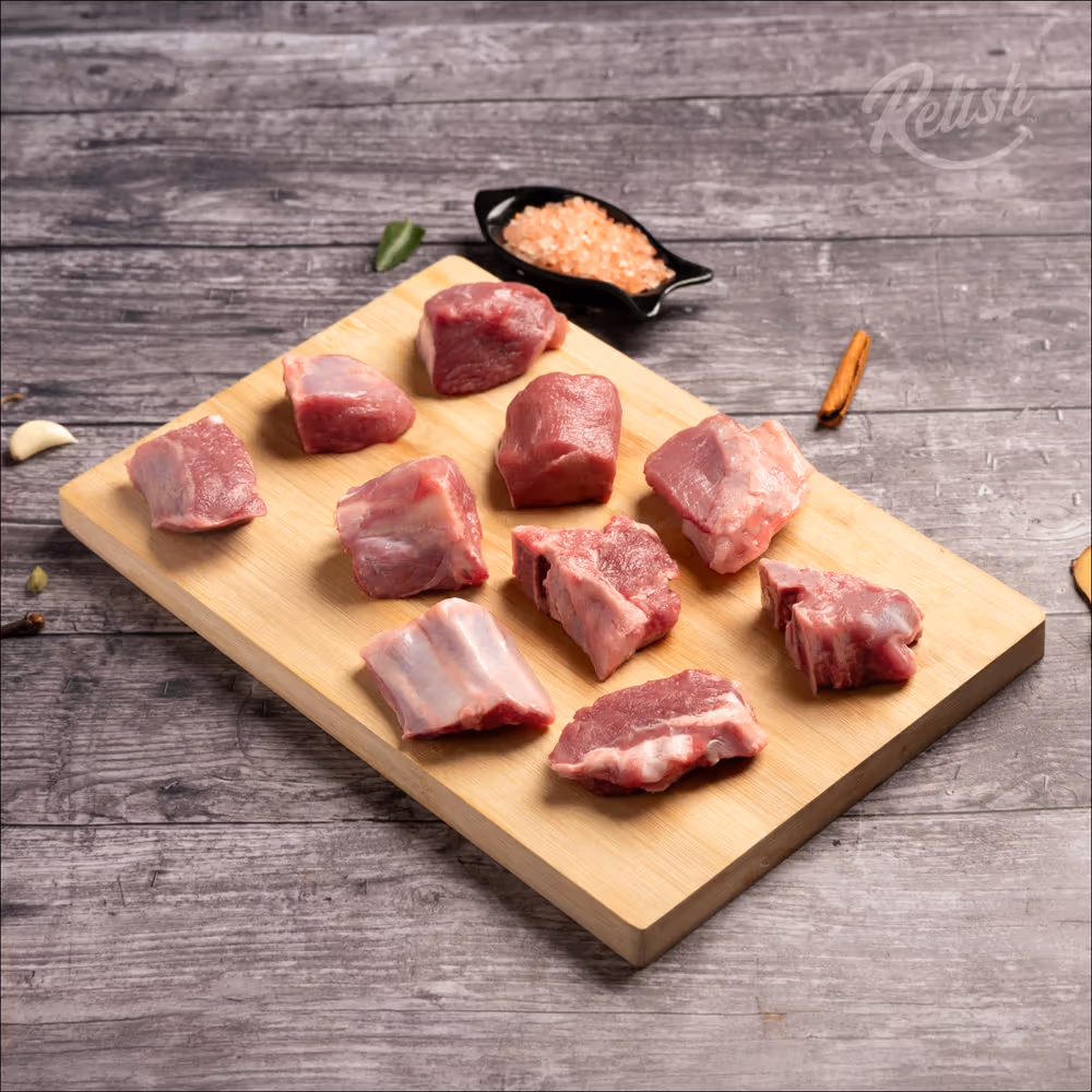 Relish Lamb Curry Cut offers rich, juicy, tender cuts with a balance of meat and fat ideal for classic mutton dishes. Relish mutton is sourced from certified Relish-Partnered farmers, and slaugthered in cetified slaughterhouses, processed immediately at 0°C, and delivered with optimum fat for rich, flavourful meals. Clean, safe, tender, just the way mutton should be.