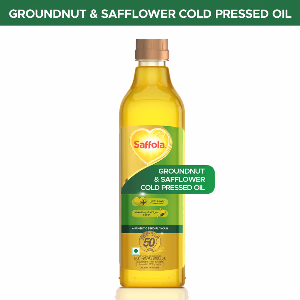 Cold Pressed Groundnut Oil, Cold Pressed Safflower Seed Oil, Antioxidants (INS 304, 319), Vitamins, Anti Foaming Agent (INS 900a)