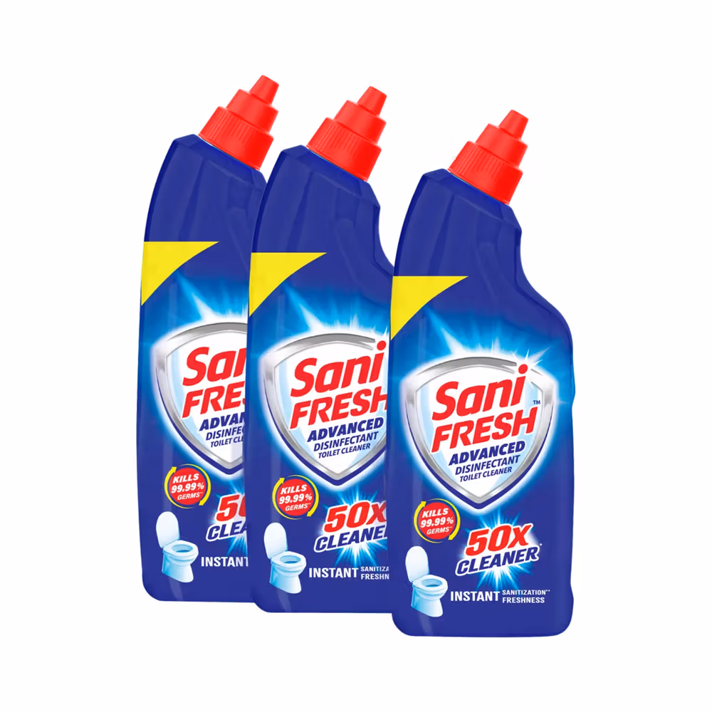 Sanifresh toilet cleaner features an advanced formula that effectively cleans and disinfects your toilet bowl, removing tough stains and leaving it sparkling clean