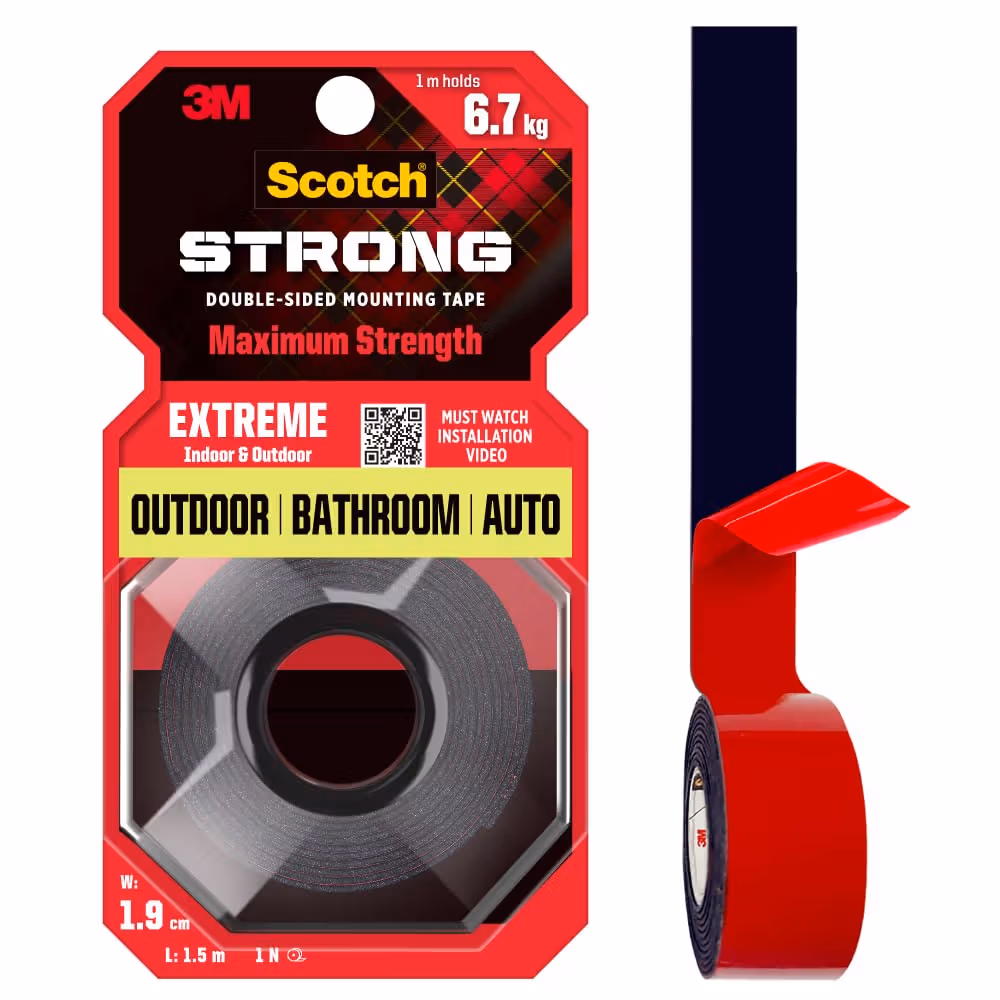 Weather-resistant for outdoor use, holds up to 6.7 kg per meter, sticks well on uneven surfaces, ideal for auto and bathroom applications