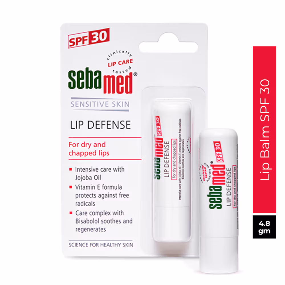 SPF 30 protects against UV rays, vitamin E nourishes and regenerates, jojoba oil smooths dry lips, chamomile soothes and heals