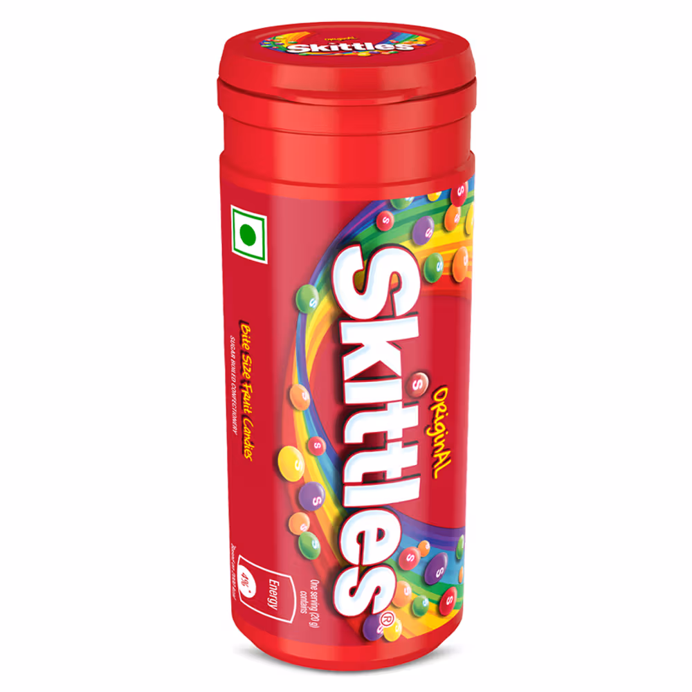 Paint your life rainbow with vibrant and flavourful Skittles soft candies. Turn all your dull moments into blissful ones and enjoy the distinctive rainbow colours & fruity flavours of Skittles rainbow candies. Treat your taste buds with a burst of fruity flavours and get transferred to a colourful world