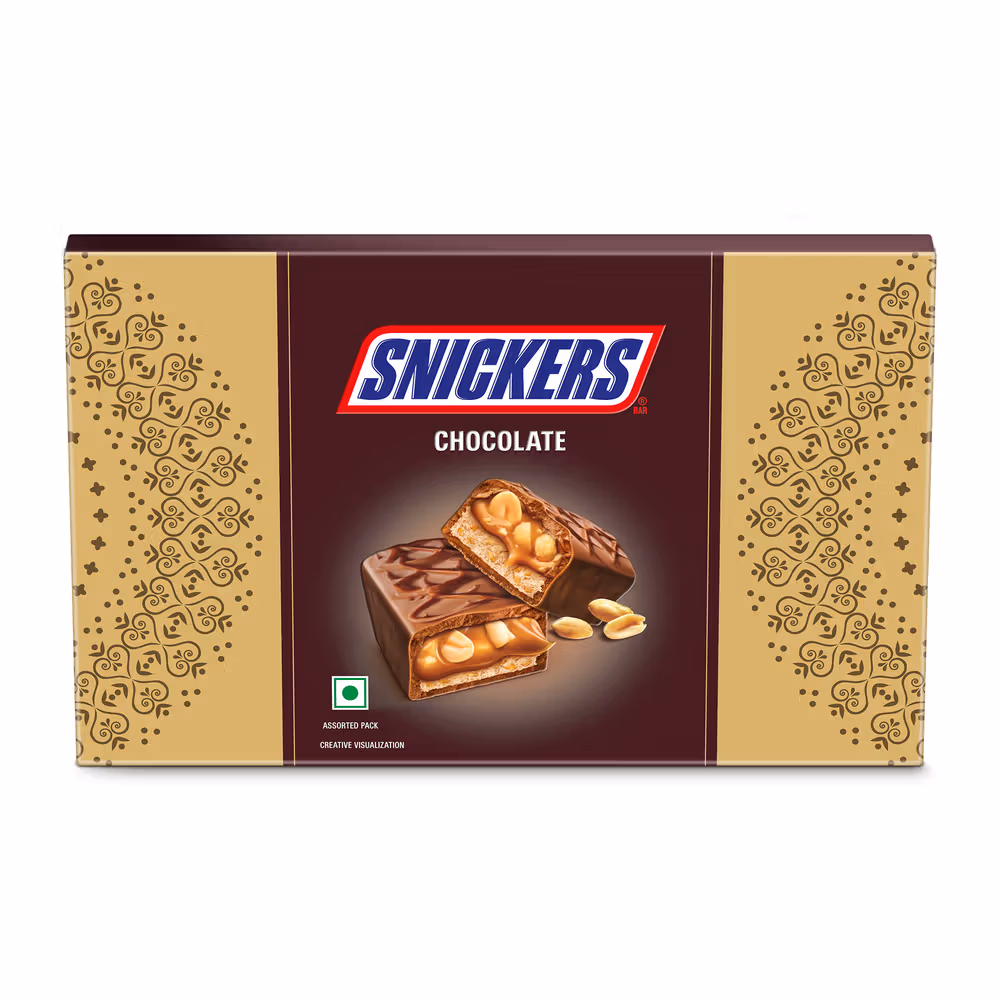 The Snickers Assorted Chocolate Gift Pack (172 g) has 8 bars in delectable flavors like Peanut, Butterscotch, Berry Whip, and Peanut Brownie. Perfect for tackling hunger and sparking celebrations