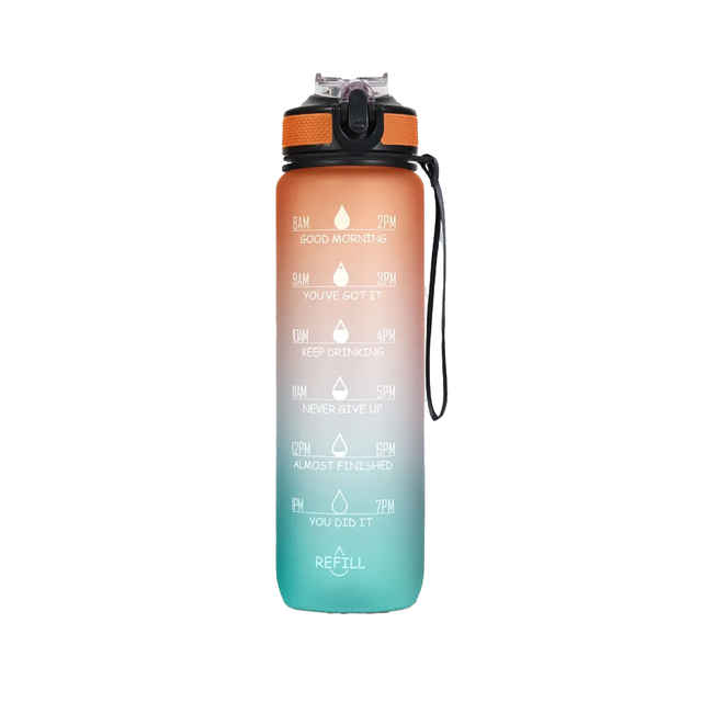 Solara Tritan Motivational Water Bottle for Travel, Office, School, Gym | Blue & Orange | 1 L