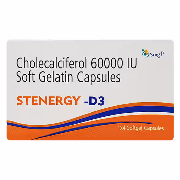 A Vitamin D supplement that helps strengthen bones, supports calcium absorption, and maintains immunity. It is beneficial for individuals with low sunlight exposure, deficiency, or increased calcium needs. Take after meals for better absorption. This medicine is well-tolerated by most individuals.