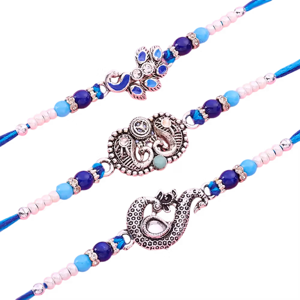 Premium silver-toned traditional designs, handcrafted with vibrant beads and threads, elegant festive accessory for siblings