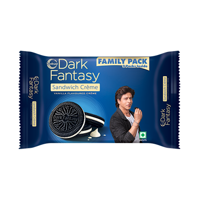 Sunfeast Dark Fantasy Vanilla Creme, Dark Crunchy Biscuit with Smooth Vanilla Creme