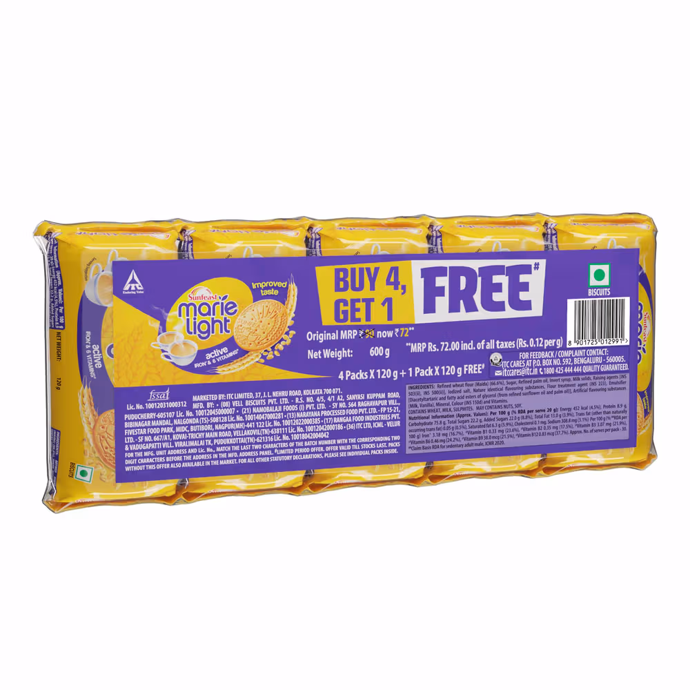 Light and crunchy texture, enriched with wheat fiber, iron, and vitamins, perfect tea-time partner, free of trans-fat