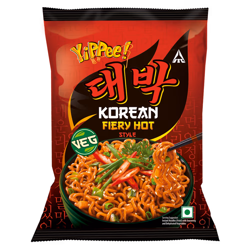Instant Noodles: Maida (Refined Wheat Flour), Refined Palm Oil, Starch, Lodized Salt, Emulsifier (Mono and diglycerides of fatty acids (from Palm Oil)), Wheat Gluten, Thickener (INS 466), Acidity Regulators JINS 500(ii), INS 501(1), INS 330), Stabilizers [INS 339(il), INS 450(i)). Seasoning: Spices and Condiments (20.2%) (Dried Garlic, Red Chilli, Dried Ginger, Black Pepper, Spice Oleoresin), Hydrolyzed Vegetable Protein (Soya Protein Isolate, Maltodextrin), Instant Noodle Powder (Maida (Refined Wheat Flour), Refined Palm Oil, Starch, Lodized Salt, Wheat Gluten), Maltodextrin, Lodized Salt, Dehydrated Onion, Sugar, Soyabean Sauce Powder Soyabean Sauce, Maltodextrin), Flavour Enhancers (INS 627, INS 631]. Nature Identical Flavouring Substances, Yeast Extract, Anticaking Agent (INS 551), Natural Flavours and Natural Flavouring Substances, Thickener (INS 415), Acidity Regulator (INS 330). Dehydrated Vegetables (100.0%) [Cabbage (32.8%), Carrot (32.8%), Spring Onion (22.9%), Beans (6.6%), Zucchini (4.9%))