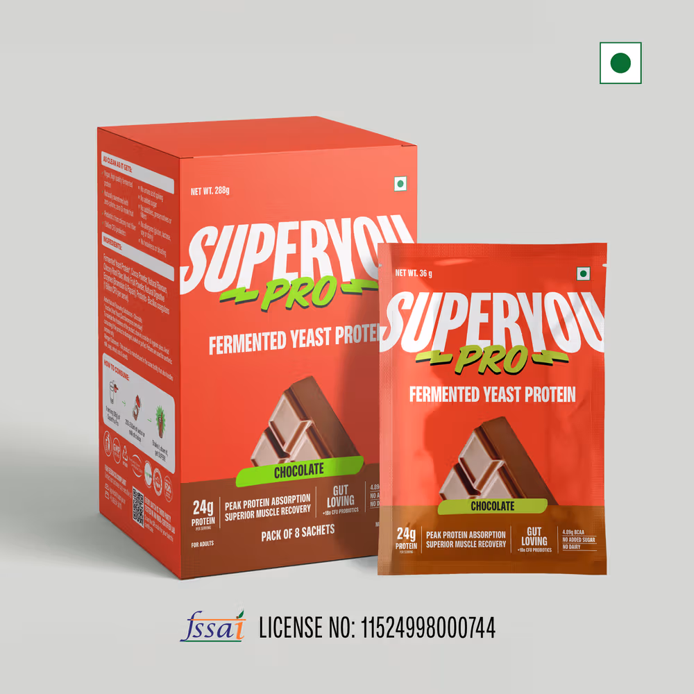 SuperYou Pro Fermented Yeast Protein delivers 24g of high-quality protein per serving, supporting daily health, energy, and muscle recovery with a delicious chocolate flavor .