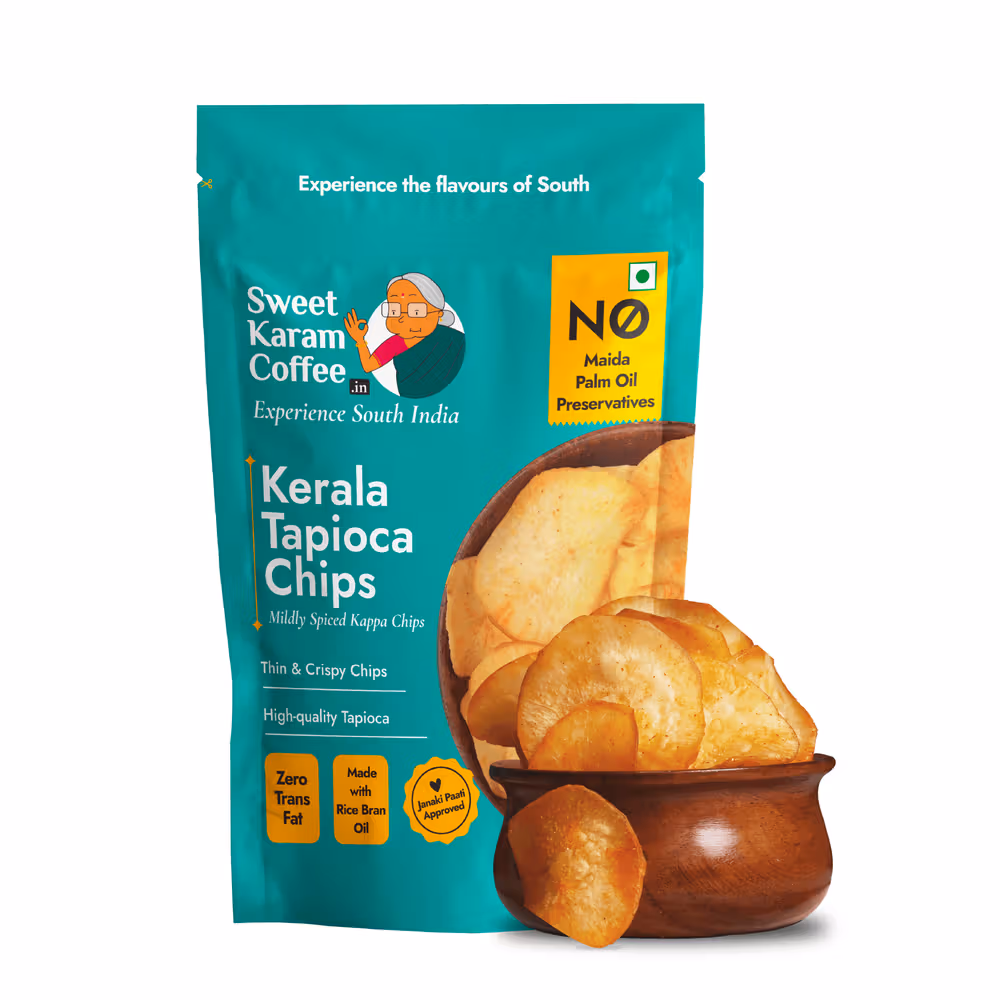 Authentic Kerala taste, made from cassava root, fried in rice bran oil, seasoned with chili and salt