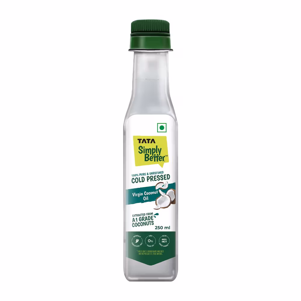 100% Pure and Unrefined Cold Pressed Virgin Coconut Oil extracted from A1 grade coconuts, naturally cholesterol-free and 0% trans fat for daily cooking