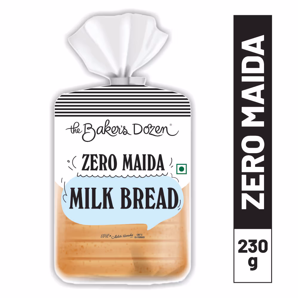 The Baker's Dozen Zero Maida Milk Bread is soft, fresh and wholesome with zero maida, zero palm oil, zero preservatives, flavors and colors for everyday goodness